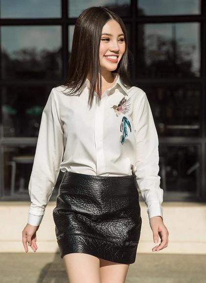 Jolie Nguyễn cũng say mê kiểu áo này, nàng hậu duy nhất của showbiz thuộc nhóm “Rich Kids of Vietnam” lựa chọn phối chiếc áo này với chân váy da ôm, tạo vẻ thanh lịch khi xuống phố.
