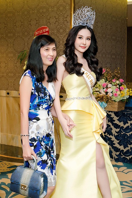 Trong các sự kiện, Hoa hậu Đại dương luôn có mẹ bên cạnh.