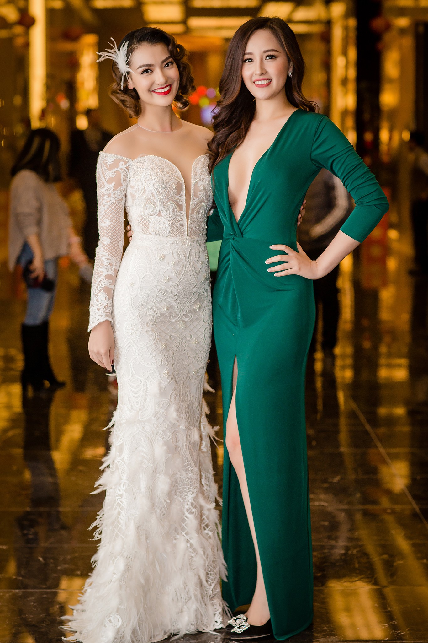 Mai Phương Thúy được cho là hoa hậu giữ được hình ảnh khá tốt sau 11 năm đăng quang. Không xuất hiện nhiều tại các sự kiện nhưng mỗi lần góp mặt cô đều đầu tư kỹ lưỡng cho hình ảnh từ trang điểm cho tới váy áo. Tại sự kiện cô hội ngộ chân dài Hồng Quế.