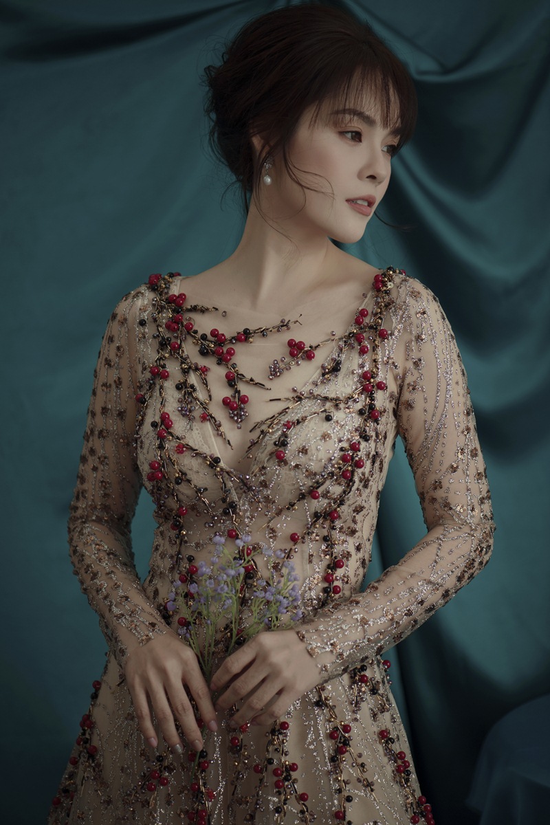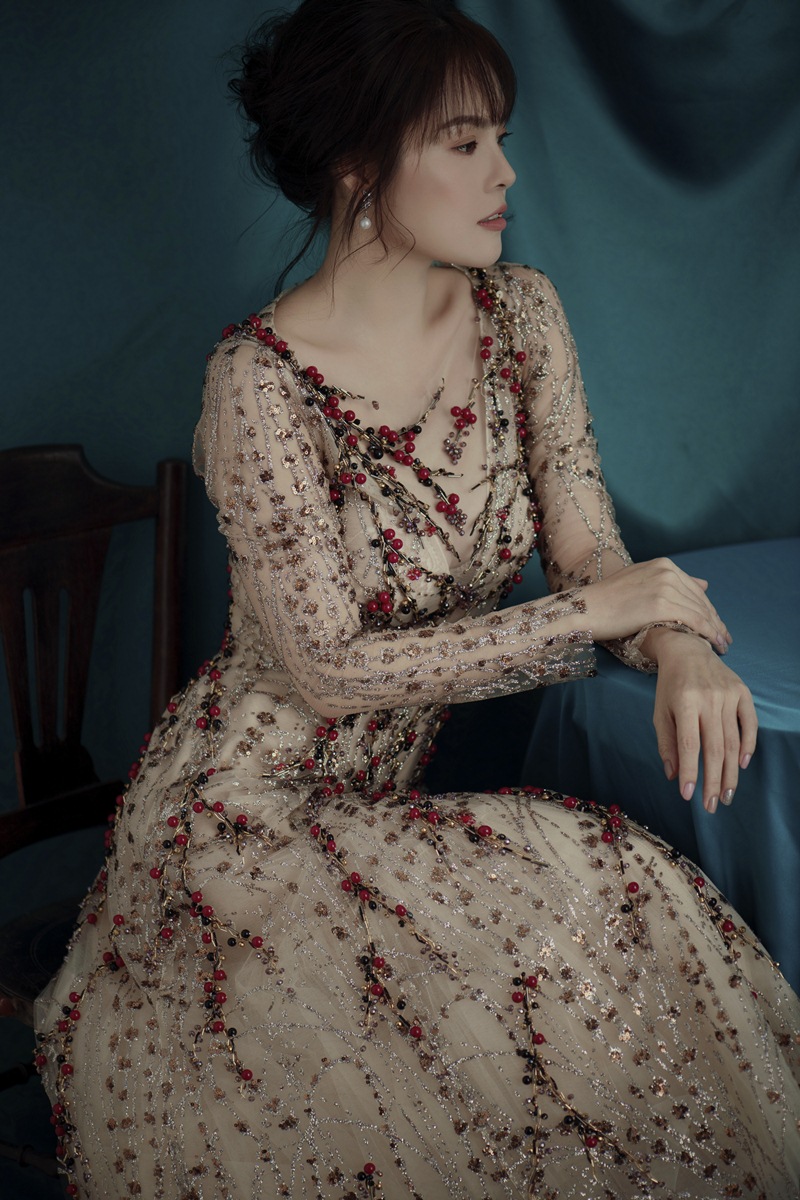 Diện những chiếc váy xuyên thấu, gợi cảm, khoe trọn số đo hình thể. Vẻ đẹp mong manh, nhẹ nhàng của nữ diễn viên khiến người đối diện không thể rời mắt.