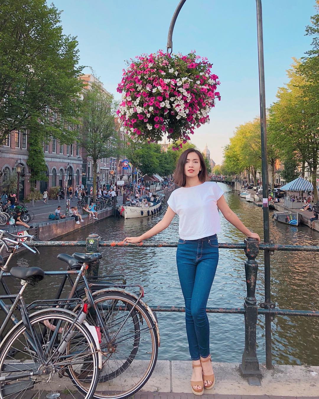 Không cầu kỳ váy áo, chỉ cần combo đơn giản gồm áo thun trắng và quần jeans ôm dáng khoe thân hình chuẩn mẫu, Ái Phương đã đẹp xuất sắc hút mắt người nhìn.