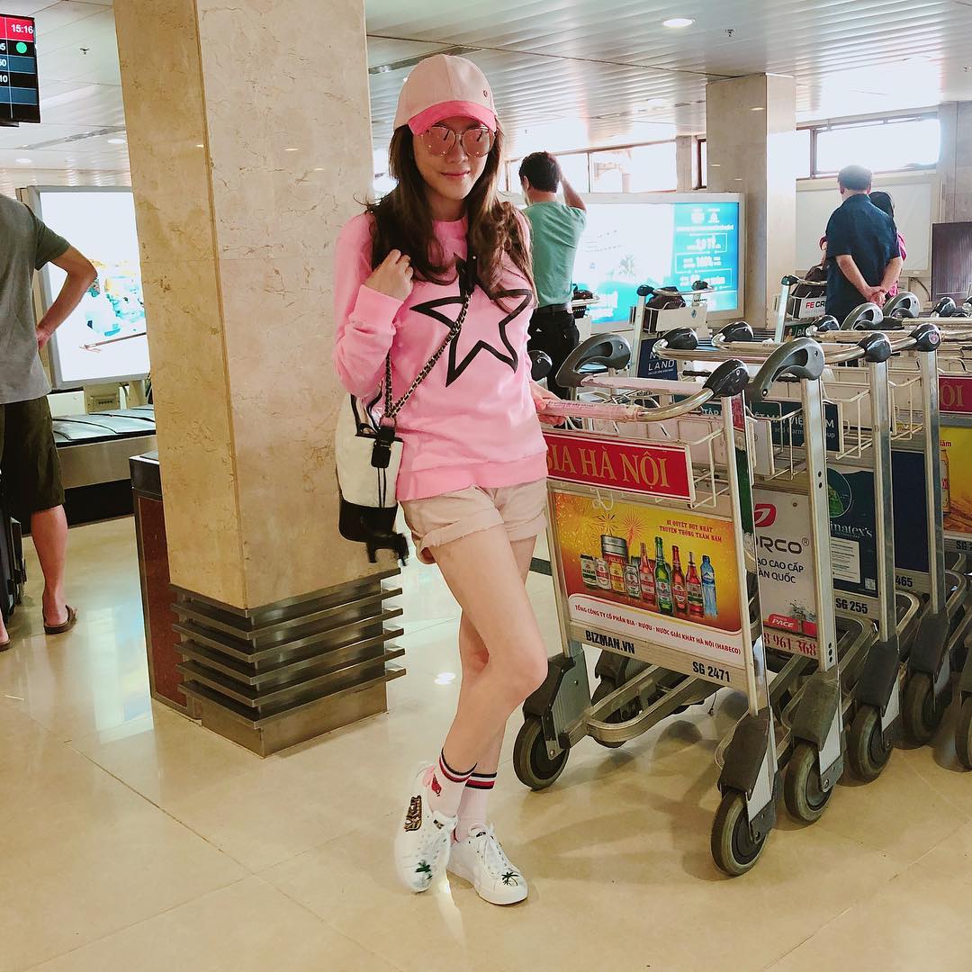 Lý Nhã Kỳ trẻ trung với thời trang sân bay được nhuộm hồng toàn tập. Sở hữu nhan sắc “không tuổi”, dù sang trọng hay trẻ trung, cô cũng dễ dàng “ghi điểm”.