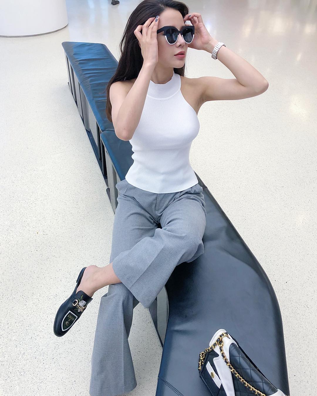Với set đồ gồm áo cổ lọ và quần culottes, Diệp Lâm Anh không quên nhấn nhá bằng đôi loafer Gucci và kính mát bản to cực kì sang chảnh.