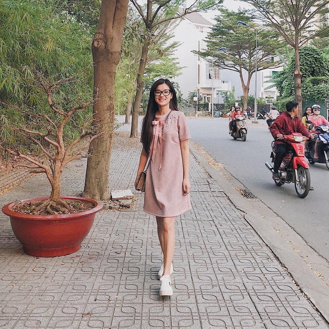 Hoàng Yến tiếp tục trung thành với phong cách nhẹ nhàng, nữ tính bằng cách diện chiếc váy hồng, phom suông, đính nơ cổ điệu đà khi xuống phố. Giọng ca “Ngây ngô” cũng sử dụng phụ kiện kính bản to nhằm tăng vẻ đáng yêu của bản thân lên gấp bội.