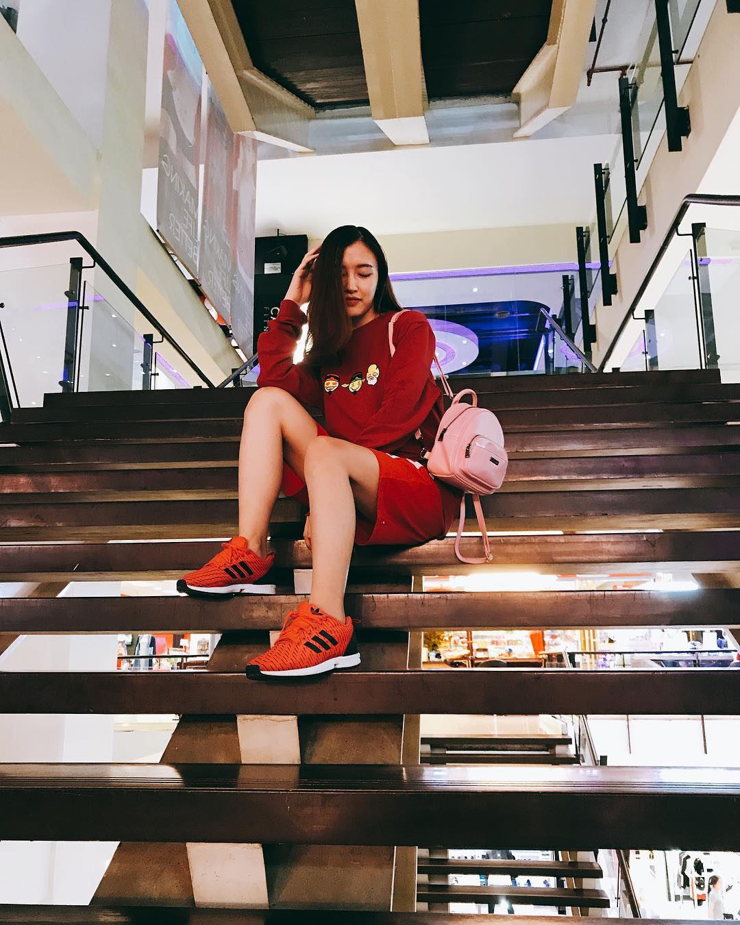 Với set đồ đỏ rực gồm áo sweater in hình ba ông Phúc, Lộc, Thọ và giày sneaker của Phương Chi The Face, ai ai cũng phải gật gù bảo nhau, Tết sắp về rồi!