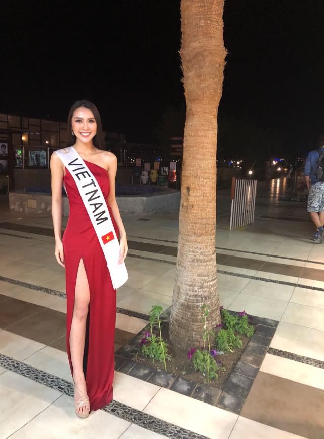 Đi kèm với bộ cánh là mái tóc dài suôn mượt giúp học trò Hoàng Thùy ghi điểm ngay lần đầu tiên xuất trận trước truyền thông và ban tổ chức. Tường Linh sẽ tham gia phần thi Bikini vào ngày 14/1, phần trình diễn trang phục truyền thống vào ngày 21/1, tham quan các danh lam thắng cảnh nổi tiếng ở đất nước kim tự tháp và bước vào đêm tranh tài cuối cùng vào ngày 26/1/2018.