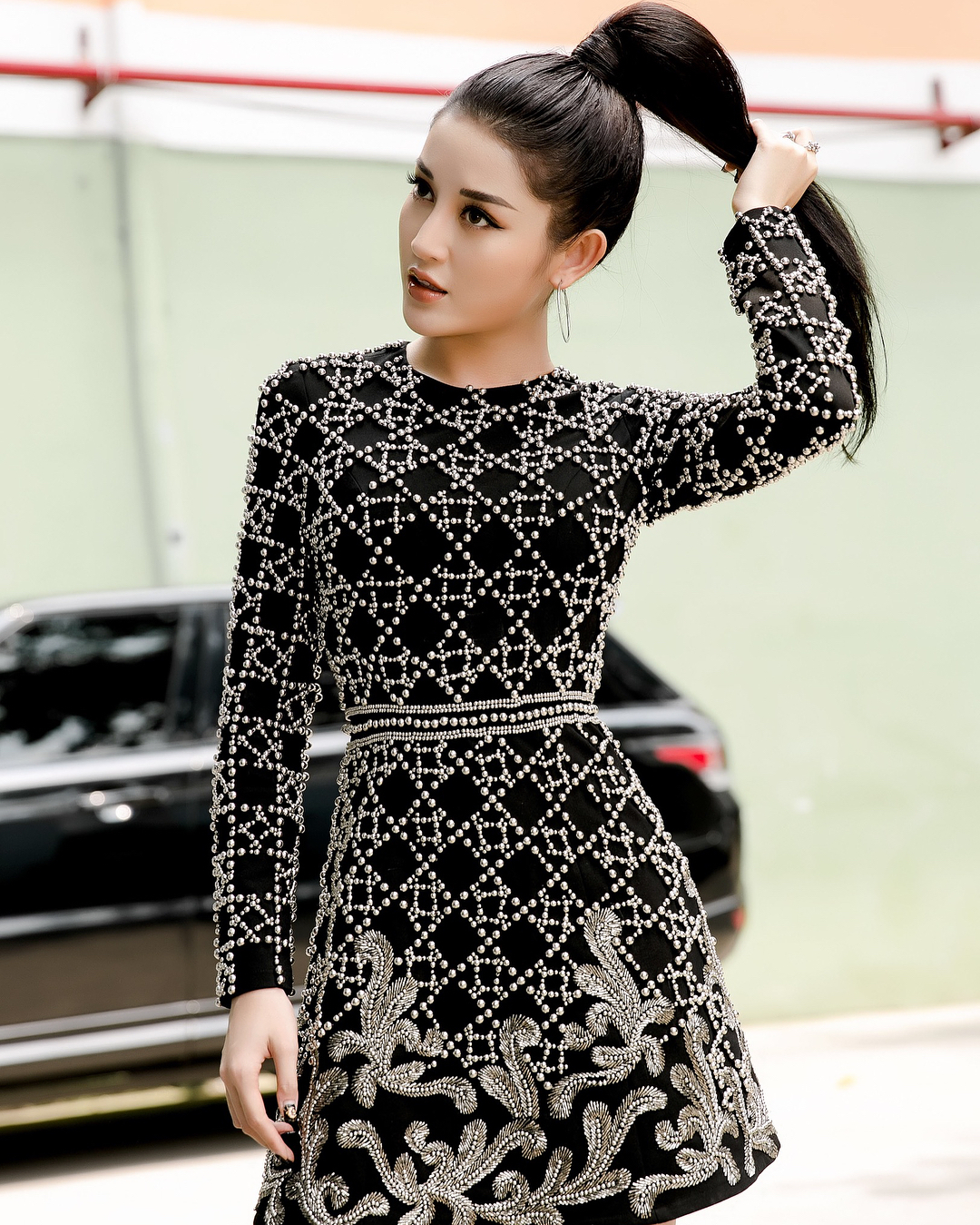 Những tưởng với khuôn mặt xinh đẹp theo kiểu ngọt ngào, Huyền My sẽ bị thất thế khi lựa chọn những bộ cánh cá tính. Thế nhưng khi xuất hiện trong một sự kiện gần đây, cô nàng khiến fan hâm mộ chẳng thể rời mắt khi diện chiếc váy đính kết kim loại, phối cùng hoa tai bản to và kiểu trang điểm mắt mèo cá tính, hoàn toàn phù hợp với tổng thể.