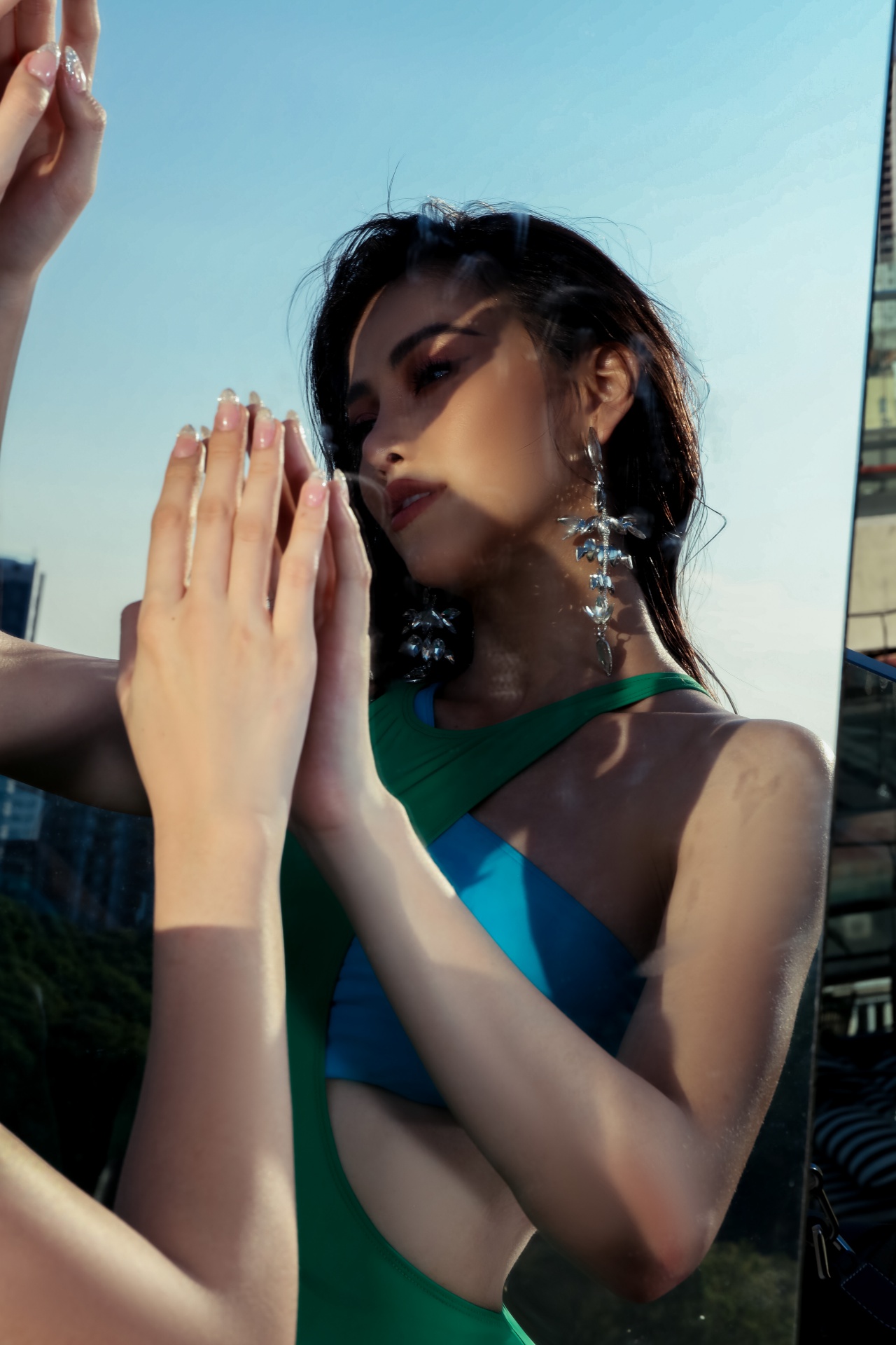 Người đẹp diện thêm áo khoác, đội mũ lưỡi trai, mang giày thể thao… càng làm tăng thêm độ chất cho bộ ảnh. Ngoài ra, việc nàng Hậu dám leo lên nóc tòa nhà cao tầng để thực hiện bộ bikini mới cũng nhận được nhiều lời khen từ dân tình.