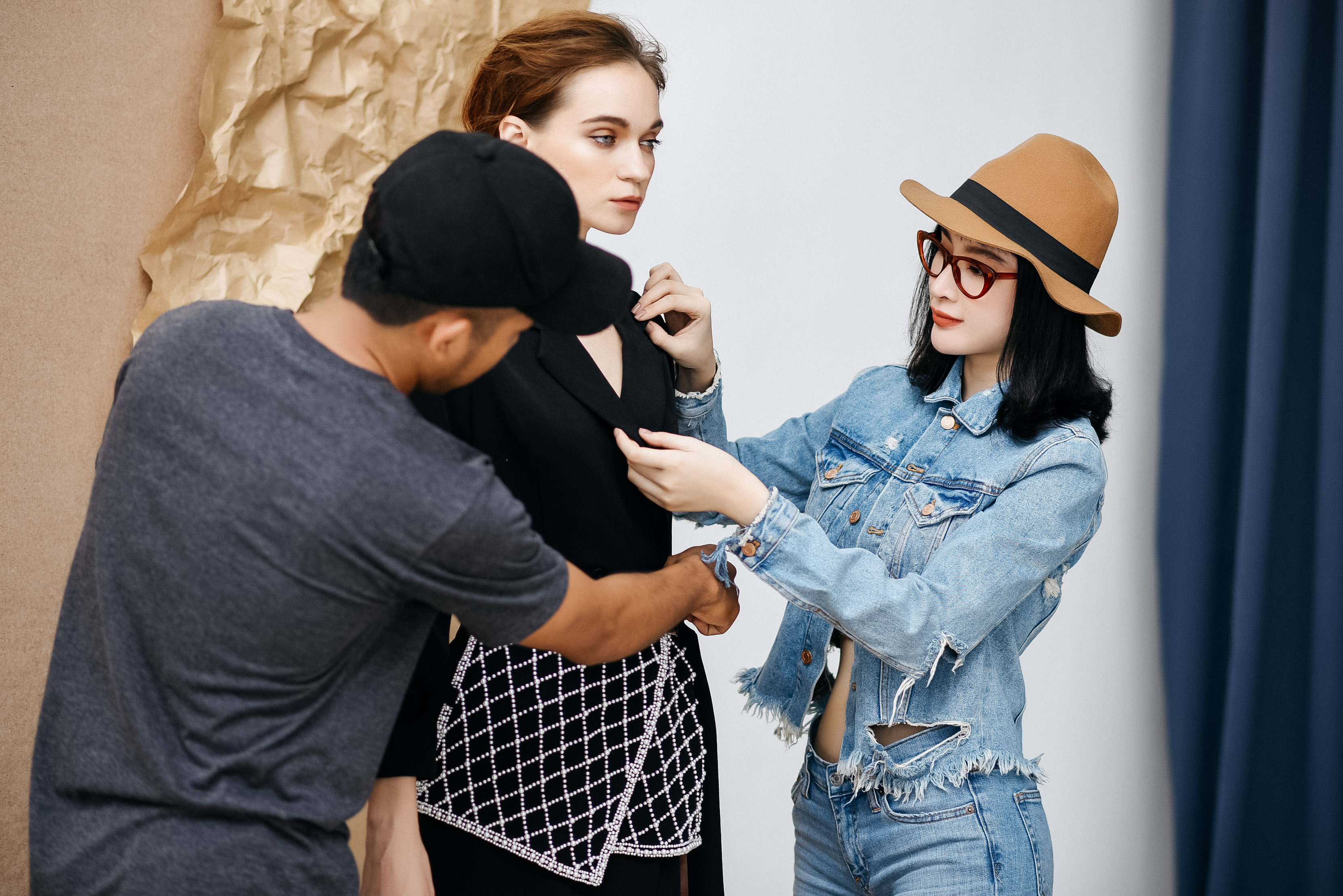 Phương Trinh đích thân giúp người mẫu mặc trang phục và chỉnh sửa từng chi tiết như phần đai lưng, thắt nơ, tay áo hay chân váy… cô nghiên cứu kĩ lưỡng nội dung và trao đổi với nhiếp ảnh gia để có được những shoot hình ăn ý nhất cho quyển lookbook đầu tiên.