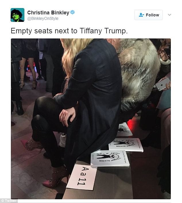 Việc xuất hiện của cô ở các đêm diễn dường như không nhận được sự hoan nghênh của các khách mời và các biên tập viên thời trang khác. Vào đêm diễn của Philipp Plein, khi người bạn thân Andrew Warren chưa tới, chỗ ngồi bên cạnh Tiffany trống trơn. Thậm chí nhiều người đã chụp hình lại khoảnh khắc này đăng trên Twitter kèm theo lời mỉa mai “Chẳng ai thèm ngồi cạnh Tifanny”.