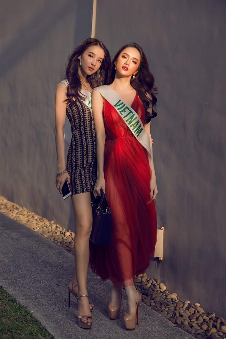 Lại một màn so kè nhan sắc giữa đại diện Việt Nam và nước chủ nhà Thái, trong bức ảnh này, vẻ mặn mà, quyến rũ của Hương Giang có phần nhỉnh hơn hẳn nét đẹp trong sáng, ngọt ngào của Yoshi.
