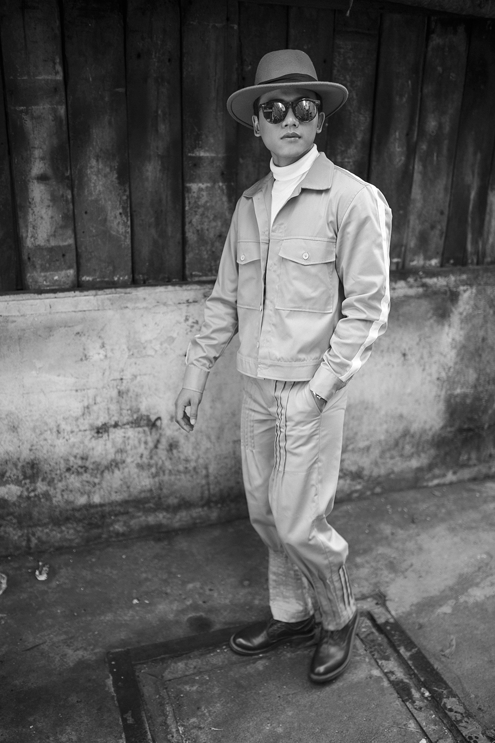 Bên cạnh đó, bộ ảnh còn sử dụng cả nước blend màu “đen, trắng” gợi nhớ đến hình tượng những chàng công tử, thiếu gia trong các bộ phim nhựa, của một thời thập niên quá vãng.
