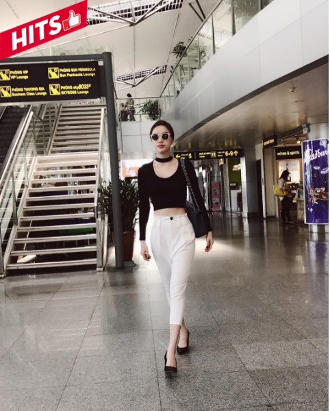 Chân dài Quỳnh Thư vi vu trời Hà Nội với style năng động, cô không quên làm điệu với túi xách Dior màu hồng nữ tính và kính mắt thời thượng.