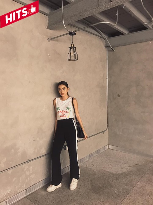 Tú Hảo lăng xê quần kẻ sọc trendy được giới trẻ ưa chuộng, chiếc áo họa tiết tropical mang đậm hơi thở của mùa hè khiến cô càng trẻ trung hơn với outfit đơn giản hết mức.