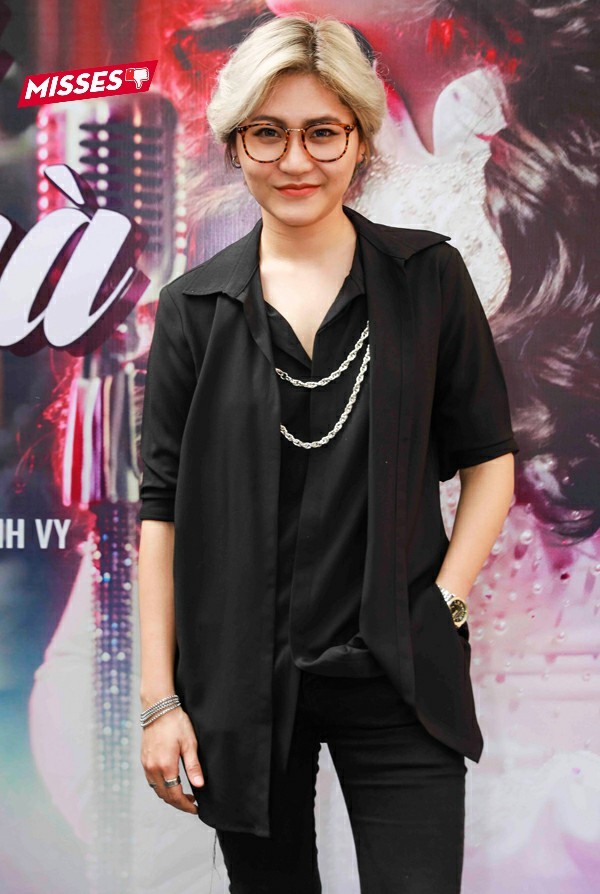 Vicky Nhung tiếp tục thep đuổi phong cách cá tính, nhưng với vóc dáng có phần nhỏ con, cách diện áo ghi-lê khiến cô nàng trở nên thấp hơn, mất hết đường cong cơ thể. Ngoài ra, phụ kiện dây chuyền bạc khá cũ kỹ, lạc mốt cũng phần nào khiến vẻ bề ngoài nữ ca sĩ, nhạc sĩ trở nên kém đẹp.