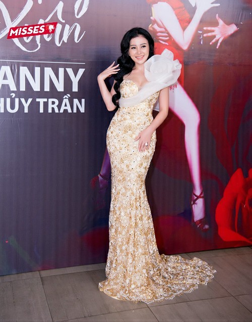 Kiểu váy với phần hoa to ngay vai không mấy mới mẻ. Chi tiết vải hoa trắng được chạy ngay dưới chân ngực kém tinh tế, cùng cách kết hợp chất liệu, màu sắc kém sang đã khiến Hoa hậu Việt Nam hoàn cầu 2016 - Janny Thủy Trần phải chịu cảnh lọt vào danh sách sao xấu tuần.