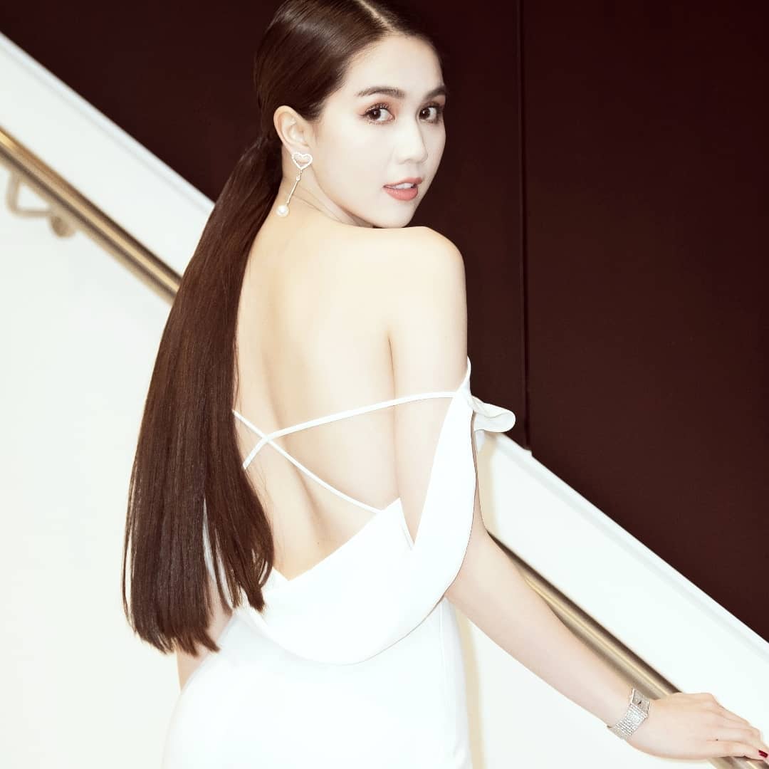 Mới đây, Ngọc Trinh tiếp tục thách thức mọi ánh nhìn khi thả dáng trong bộ váy trắng có phần lưng cắt hở táo bạo. Thiết kế không ôm sát hình thể, tưởng chừng dễ khiến người mặc nếu sơ sảy dễ rơi vào tình huống lộ hàng, ngượng ngùng, nhưng không, khi quay về phía chính diện, khán giả mới thấy được sự tinh tế, kĩ thuật may đẳng cấp của nó.