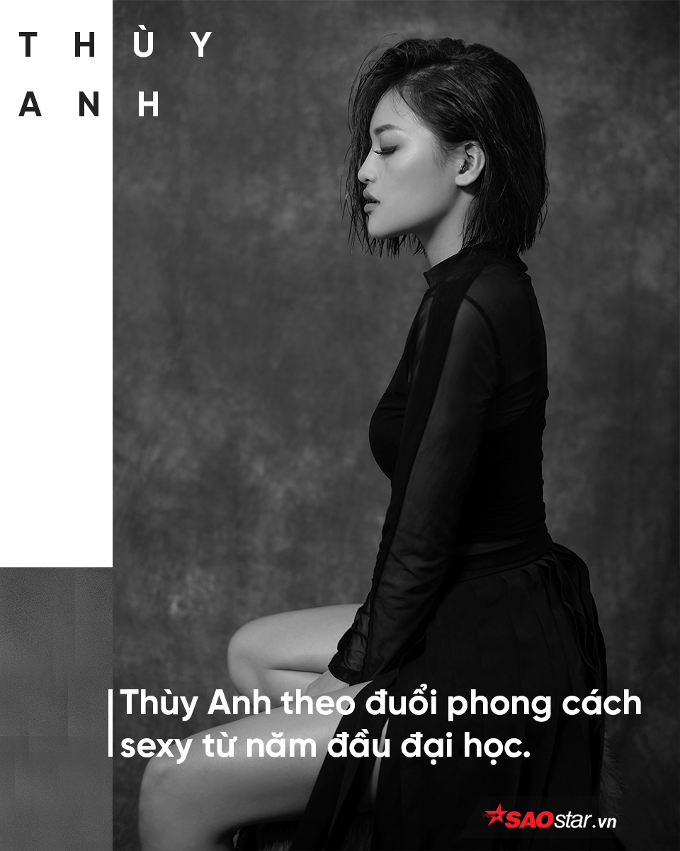 Mình bắt đầu theo đuổi phong cách sexy, quyến rũ từ năm đầu đại học. Thùy Anh bắt đầu đi tập gym và chơi vài bộ môn thể thao để có thể tự tin hơn khi theo đuổi phong cách đó. Và tới thời điểm hiện tại, mình mới thực sự tự tin với bản thân.