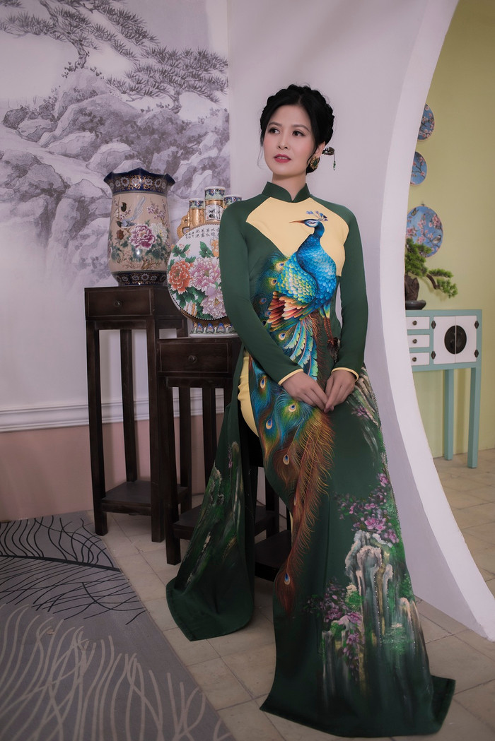 Trong BST áo dài của NTK Kenny Thái, nữ diễn viên khoác lên mình những tà áo dài cao cấp được đính kết và vẽ tay một cách cầu kỳ, tinh xảoNgắm nhìn nhan sắc của Thúy Hà, nhiều khán giả cũng phải trầm trồ vì vẻ đẹp hồn hậu và mặn mòi của côCô khoác trên mình những dáng áo dài truyền thống lẫn cách tân với mấn đội đầu Đường cắt cúp lạ mắt nơi vai, cổ áo và cánh tay đều được tận dụng tối đa, cho người phụ nữ trọn phần quyến rũ mà vẫn giữ nét Á Đông duyên thầmTinh hoa hồn Việt náu mình trong hình ảnh bông sen, hạc trắng, trống đồng ngàn năm bản sắc trên thân tà áo dàiThúy Hà kết hợp cùng diễn viên đàn em Quỳnh Hoa với tạo hình ‘chị chị em em’ trong tà áo dài thướt tha đầy sắc màu
