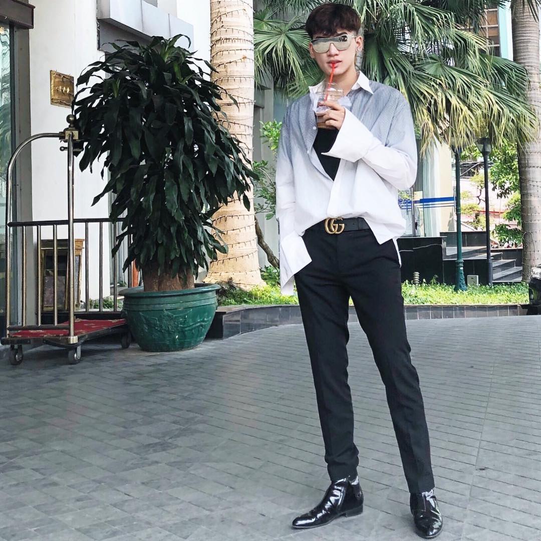 Gu thời trang của Ali Hoàng Dương ngày càng được nhiều người đánh giá cao bởi độ bắt trend. Quán quân Giọng hát Việt 2017 sở hữu cho mình nhiều items hàng hiệu đắt giá. Đơn cử như áo sơ mi ombrey YSL, thắt lưng Gucci cùng giày Dolce & Gabbana trong set đồ này.