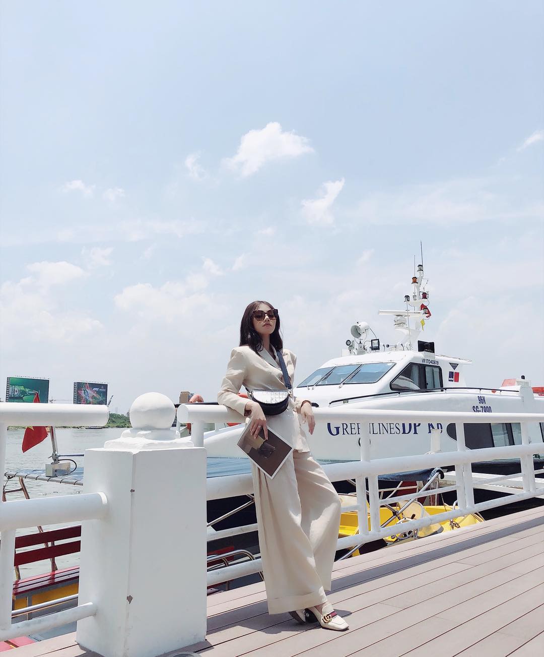 Nhìn thì có vẻ đơn giản, nhưng outfit của Hoàng Yến Chibi gồm toàn những items tiền tạ, tiền tấn như vali Louis Vuitton, giày và túi Gucci.