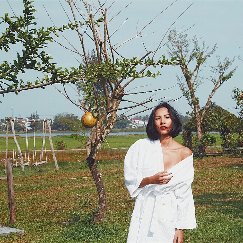 Bắt nhịp xu hướng diện áo choàng tắm của sao Việt, Minh Triệu cũng nhanh chóng chụp một bức ảnh đăng lên trang cá nhân.