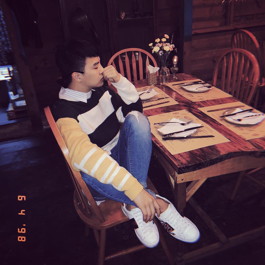 Duy Khánh Zhou Zhou trẻ trung với cách mặc layer áo sơ mi và sweater. Anh chàng sử dụng đôi sneaker Gucci đang được nhiều sao Việt yêu thích nhằm hoàn thiện tổng thể.