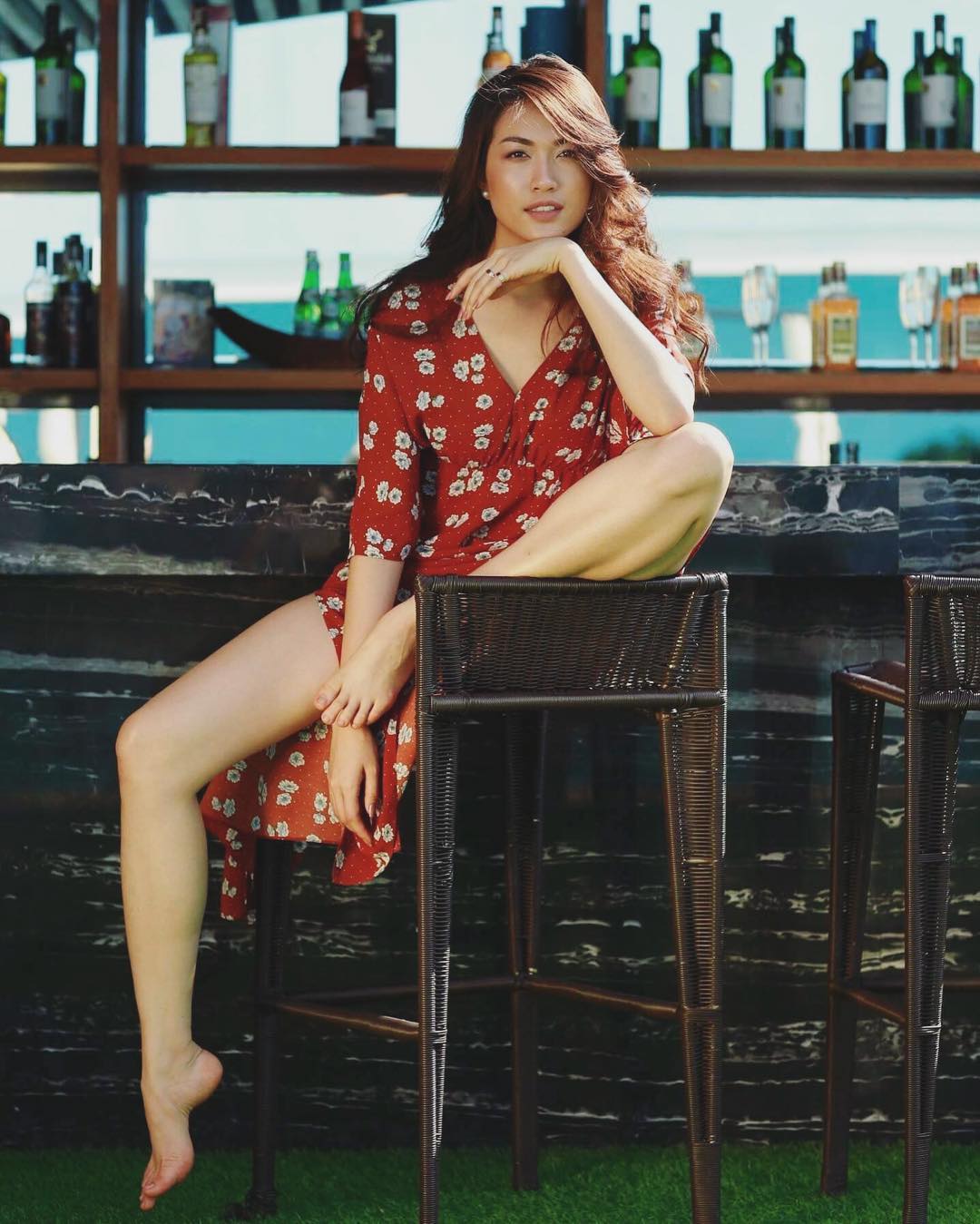 Váy hoa nhí chất liệu mềm mại là sự lựa chọn của á hậu Lệ Hằng khi xuống phố.