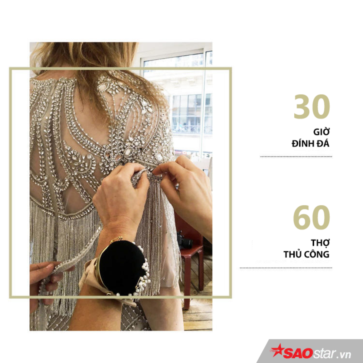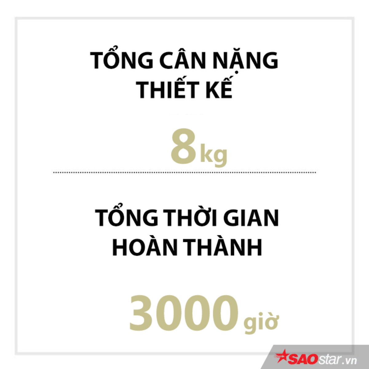 Chiếc váy cưới đặc biệt nổi bật phải mất đến 3000 giờ làm việc hoàn toàn bằng tay, quy tụ 60 thợ thủ công lành nghề làm việc liên tục không ngừng nghỉ đã nói lên sự đầu tư hoành tráng của nhà thiết kế đại tài đến từ Philippines.