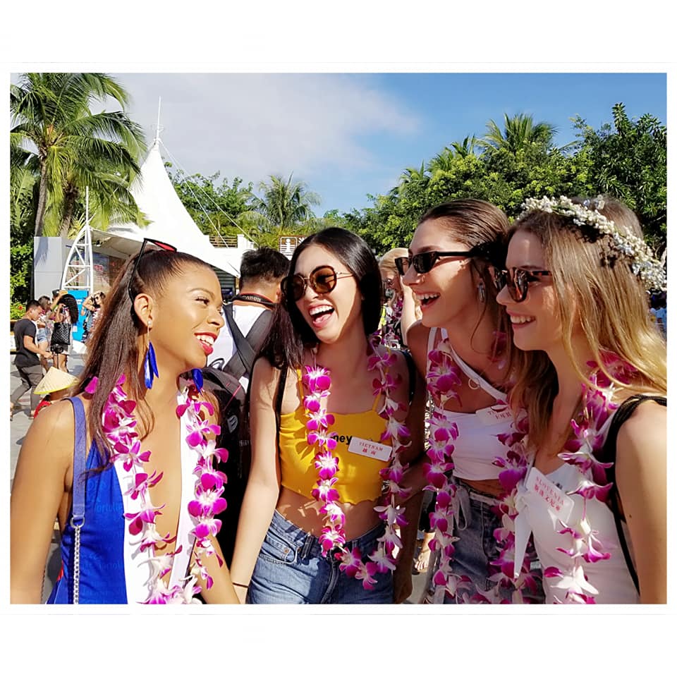 Điểm khác biệt đó là không phải lúc nào cũng lòe xòe váy áo, kiêu kỳ với giầy cao gót, Tiểu Vy 'dám' mặc quần short áo thun trong lịch trình hoạt động của Miss World. Cô bé cũng tự tin đi giầy thể thao dù biết nó có thể không tôn dáng bằng dày cao gót.