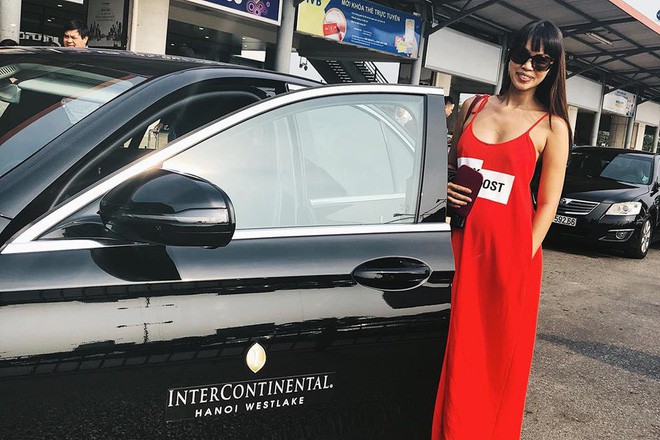 Trước đó siêu mẫu Hà Anh cũng từng mặc chiếc váy này, thay vì dép, cô phối cùng đôi sneakers màu trắng trơn thanh lịch. Trang phục này giúp cô giấu bụng bầu một cách khéo léo mà vẫn rất thời trang.
