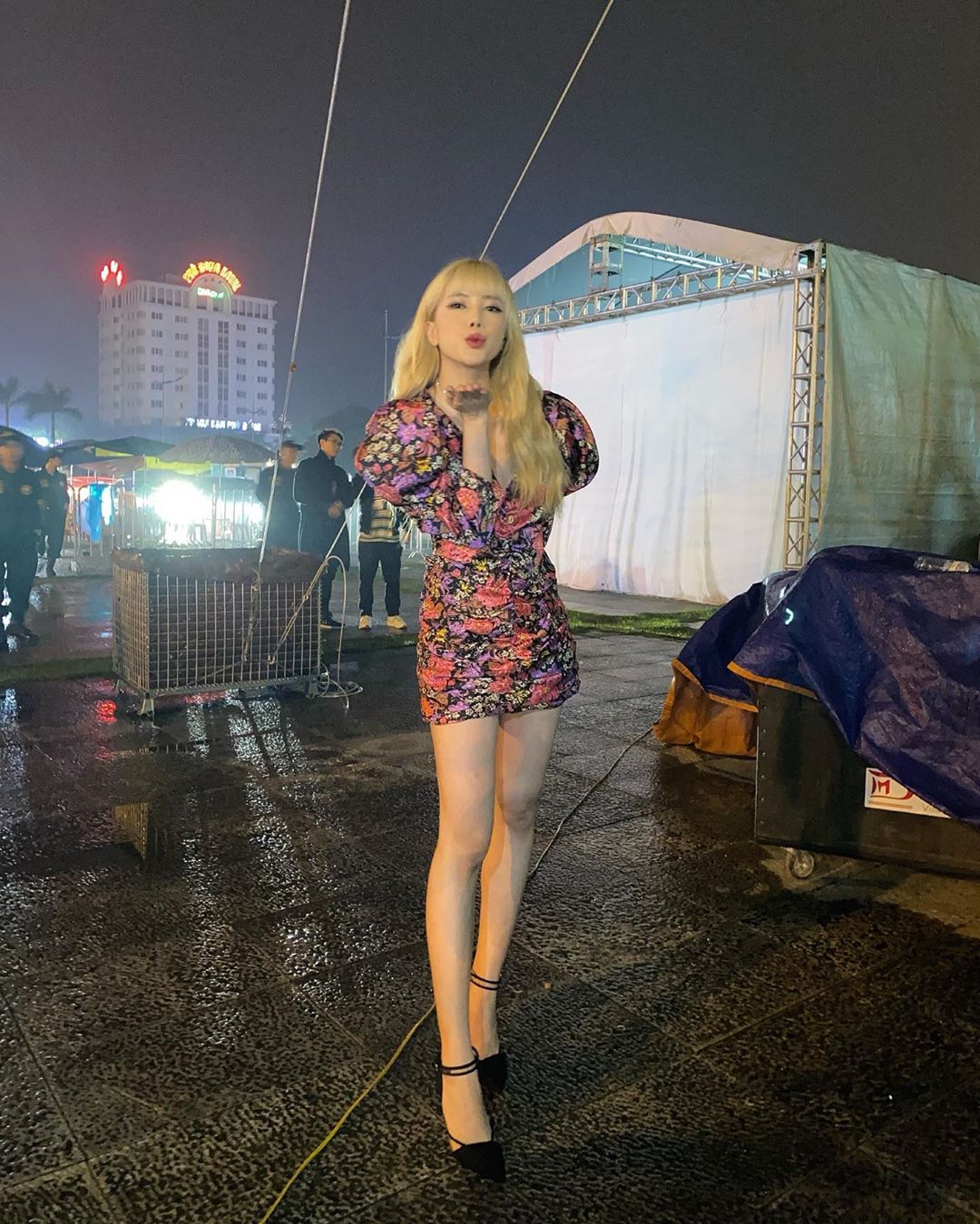 Bộ cánh ôm sát, cắt xẻ táo bạo hoà cùng mái tóc trắng của Bảo Anh đã khiến cô nàng trở nên cực kỳ gợi cảm cá tính.