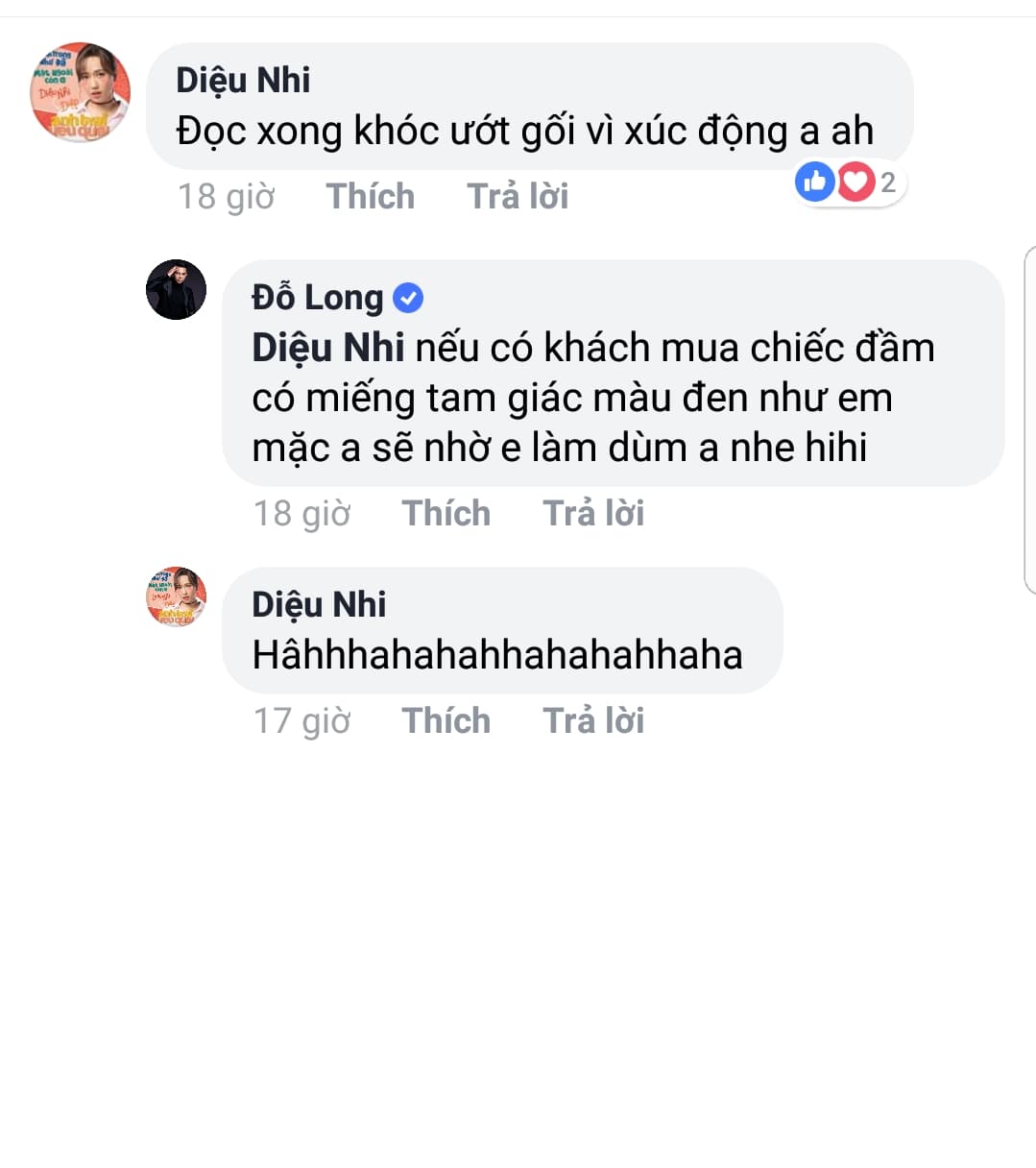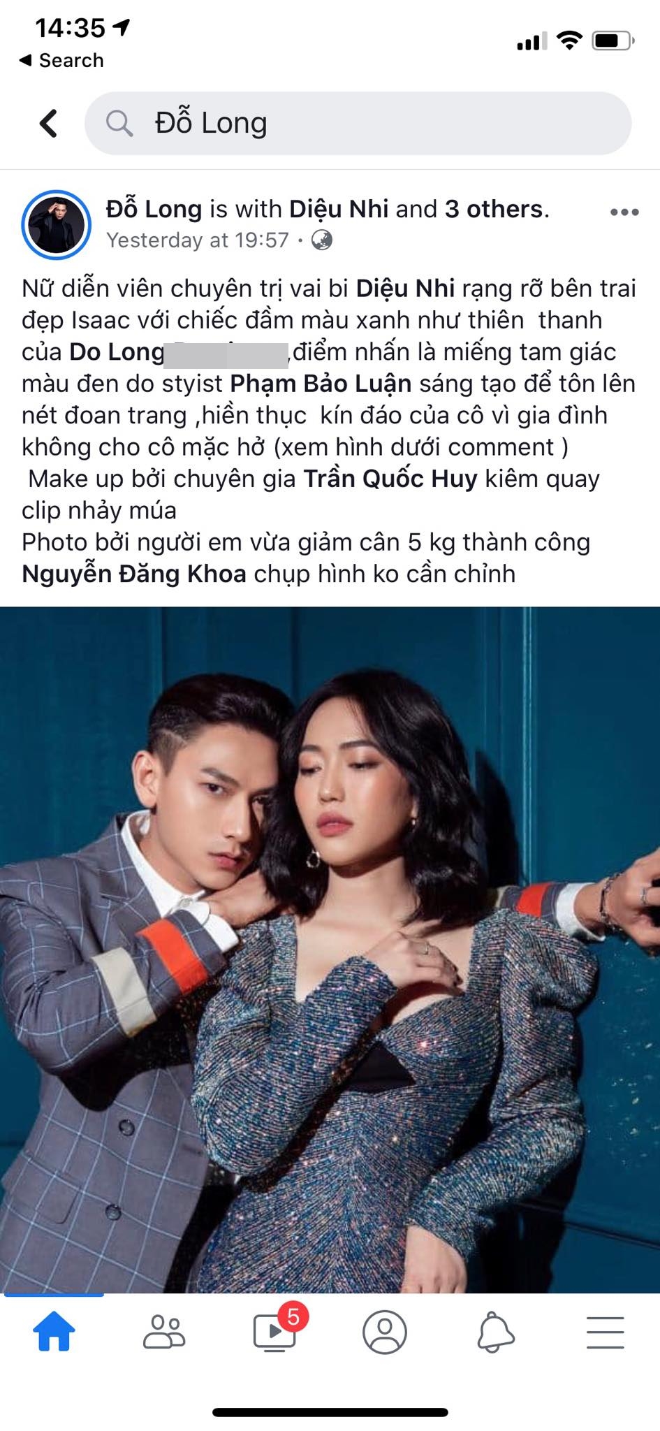 Khi thấy sáng tạo của mình được chỉnh sửa, NTK Đỗ Long đã hóm hỉnh viết dòng trạng thái chọc ghẹo Diệu Nhi…