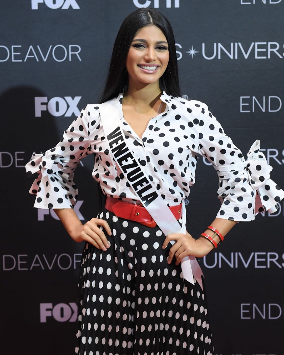 Nếu H'Hen Niê để mất điểm thì các đối thủ lại ghi điểm thuyết phục. Hoa hậu Venezuela diện thiết kế chấm bi đen trắng huyền thoại.