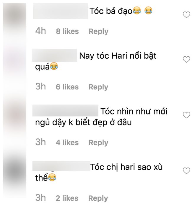 Tuy nhiên, những tấm ảnh mà bà xã Trấn Thành đăng tải lên trang cá nhân lại hoàn toàn trái ngược, phần tóc mái do cố tình chải bung phồng quá mức thành ra trông lỉa chỉa và có phần không mấy duyên dáng.
