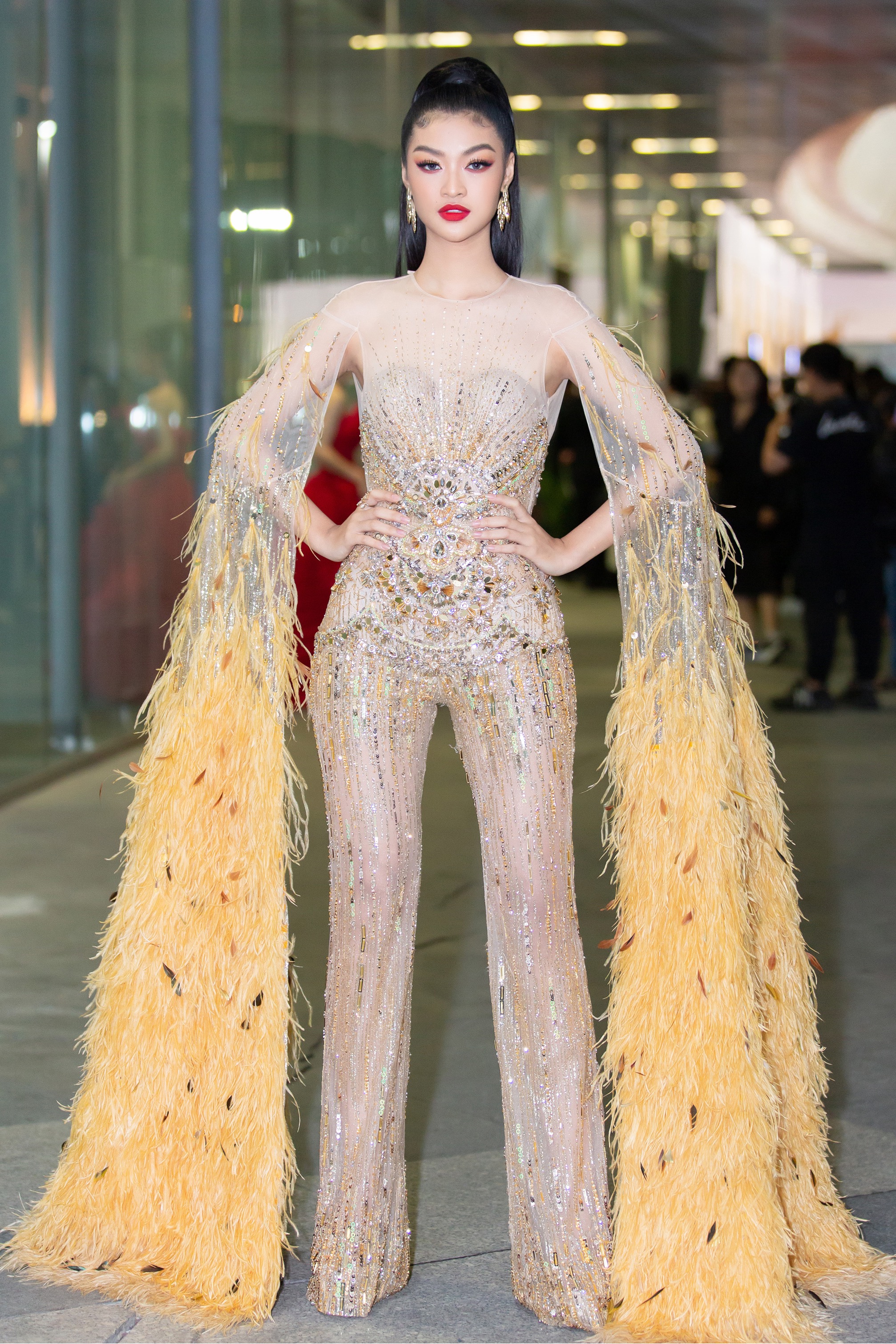 Hoa hậu Tiểu Vy vô cùng quyến rũ và sang trọng khi diện váy xẻ cao khoét eo khoe trọn đường cong cơ thể.