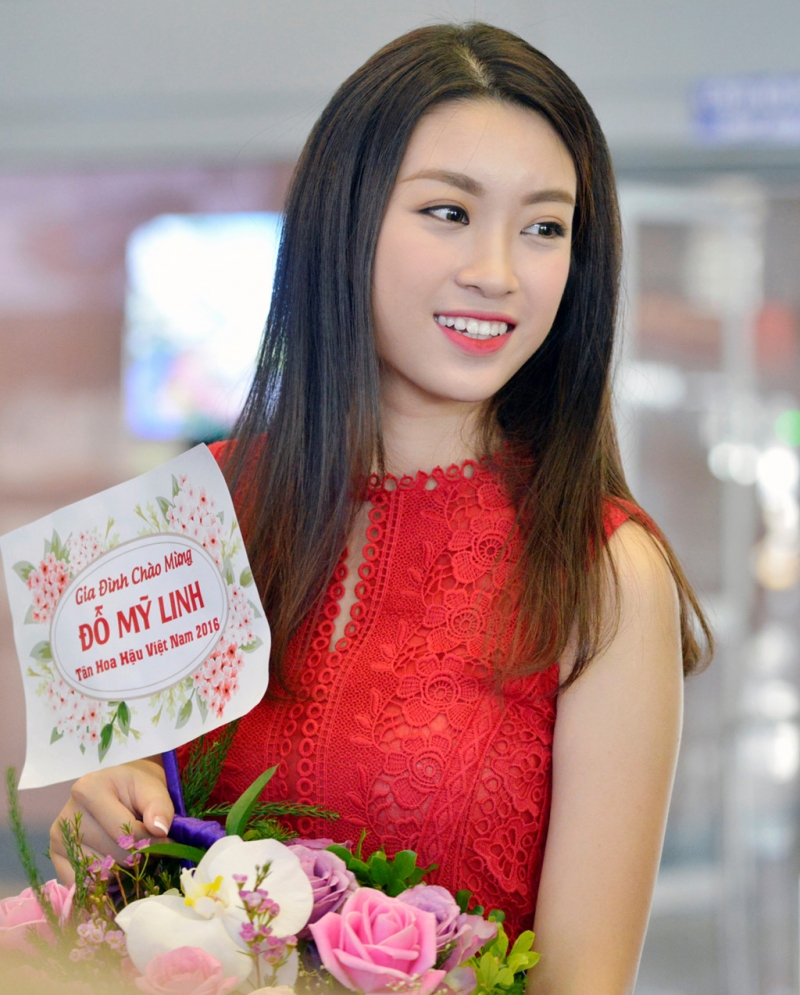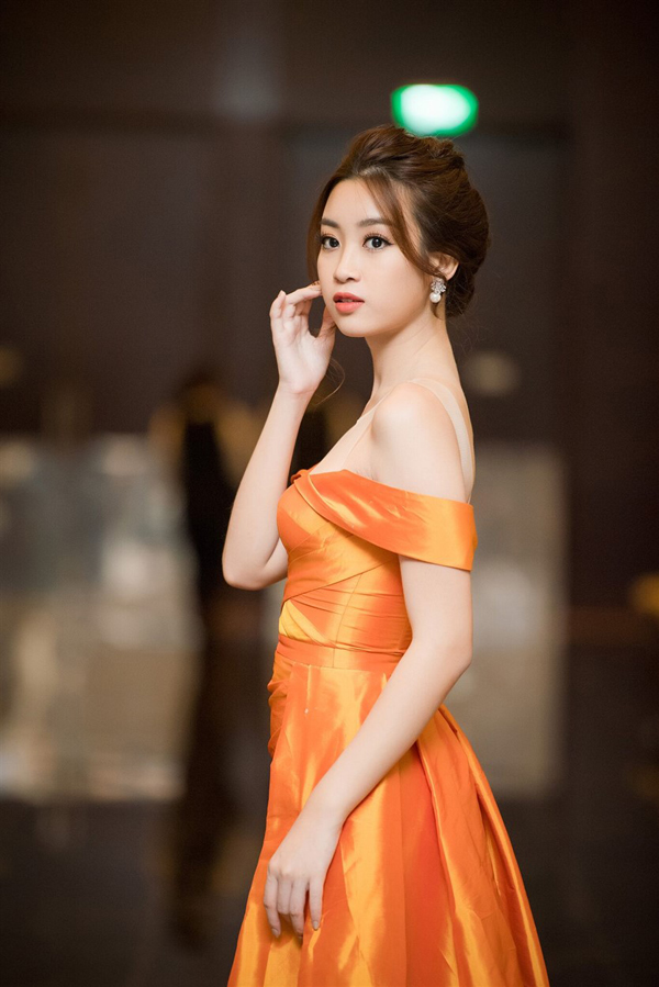 Từ một cô hoa hậu mờ nhạt, Mỹ Linh phấn đấu và trở thành “nữ hoàng thảm đỏ”. Mọi lúc nàng hoa hậu xuất hiện, ánh mắt đều đổ dồn về cô. Hãy nhìn đôi vai trần và chiếc cổ xinh đẹp được khoe triệt để khi nàng búi tóc lên. Mỹ Linh vốn dĩ đã có thừa nét thanh lịch, búi tóc càng tôn lên sự thanh thoát và quyến rũ của nàng thôi.