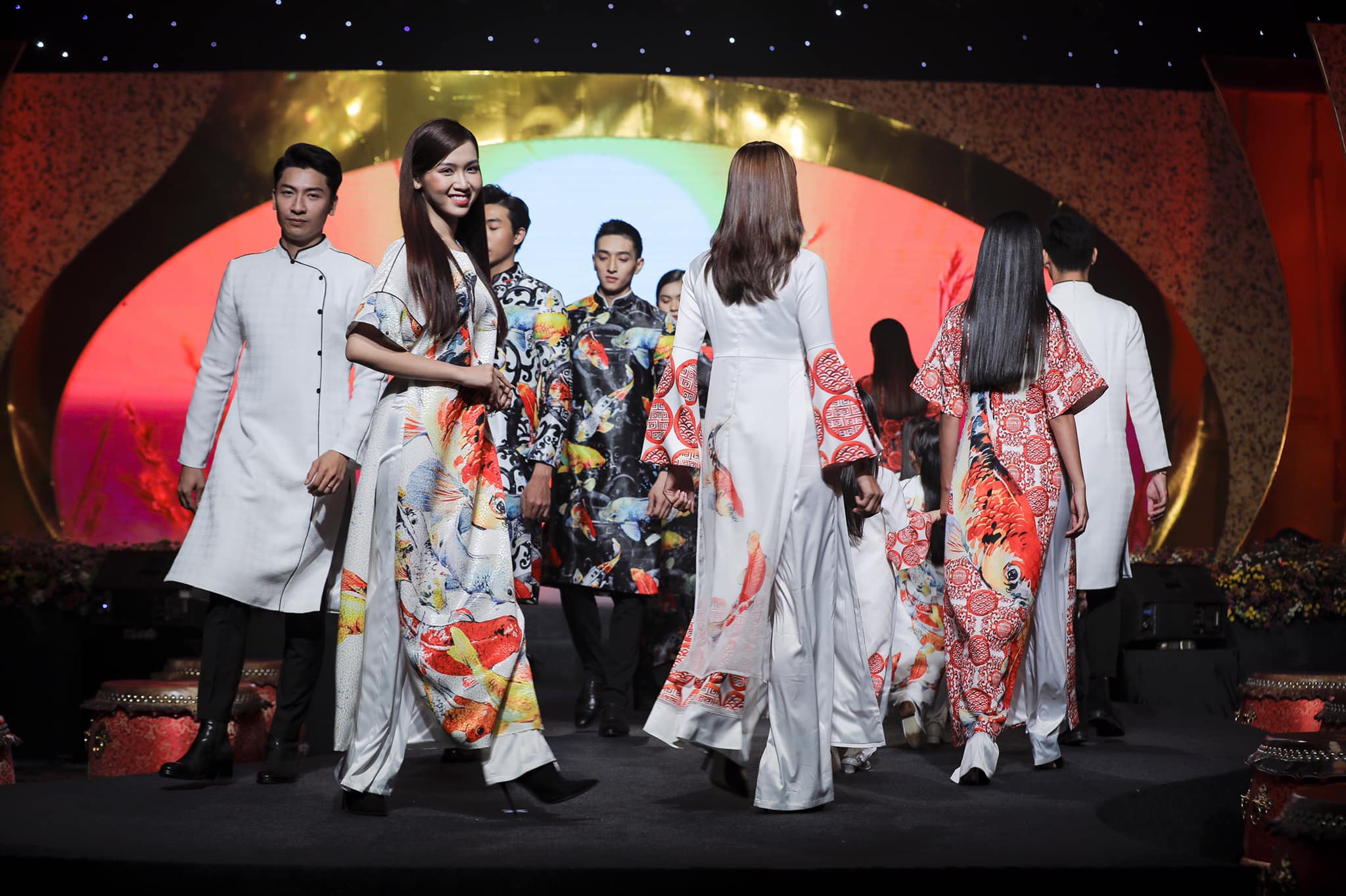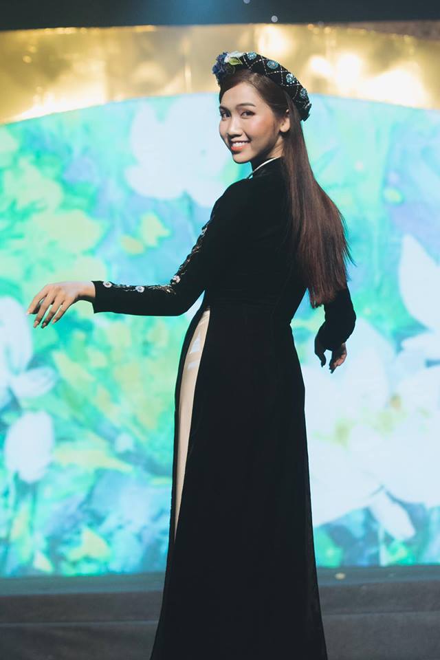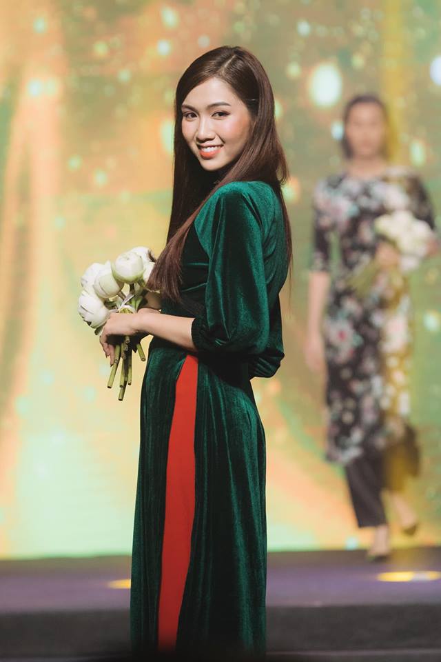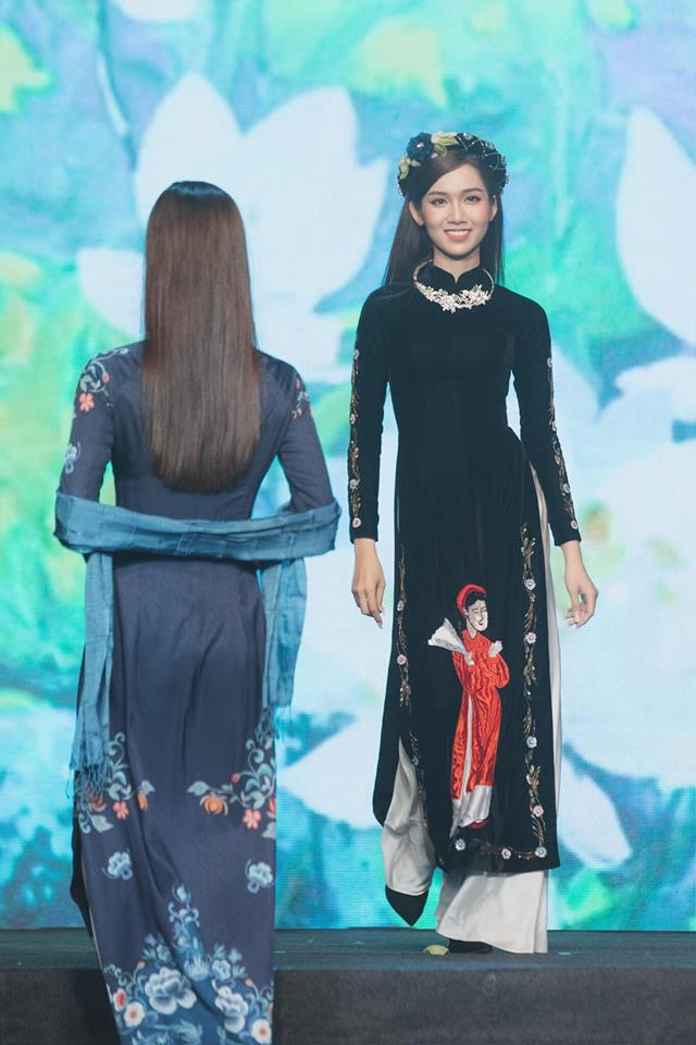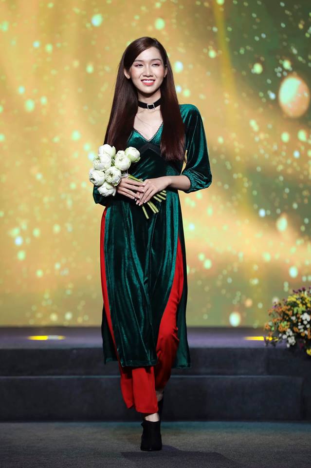 Với thân hình nhỏ nhắn nhưng khá chuẩn, khoác bộ áo dài lên người, Đỗ Nhật Hà cũng không hề thua kém người mẫu nào khác. Thần thái chuẩn hoa hậu cùng nụ cười luôn thường trực trên môi, Đỗ Nhật Hà như một bông hoa lạ giữa một “rừng” chân dài khác.