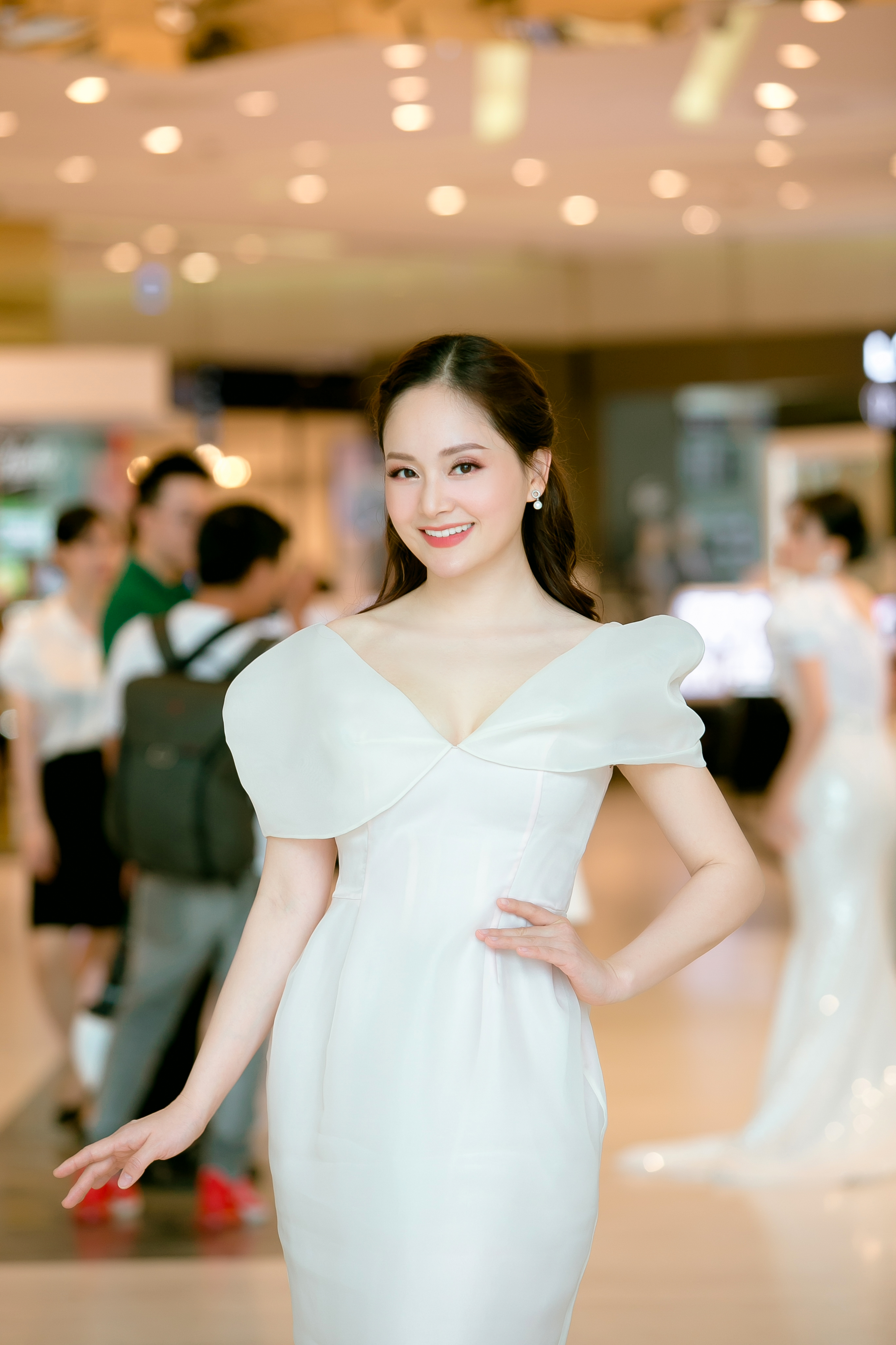 Chọn cho mình bộ váy có phom dáng phồng duyên dáng, Lan Phương khiến khán giả chẳng thể rời mắt khỏi nhan sắc yêu kiều của mình.