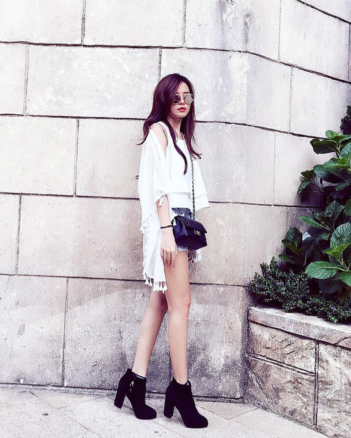 Thời trang street style của cô nàng khá trẻ trung, năng động và đơn giản với áo sơ mi phối với quần short ngắn hay áo ba lỗ.