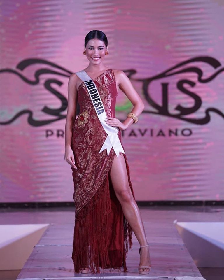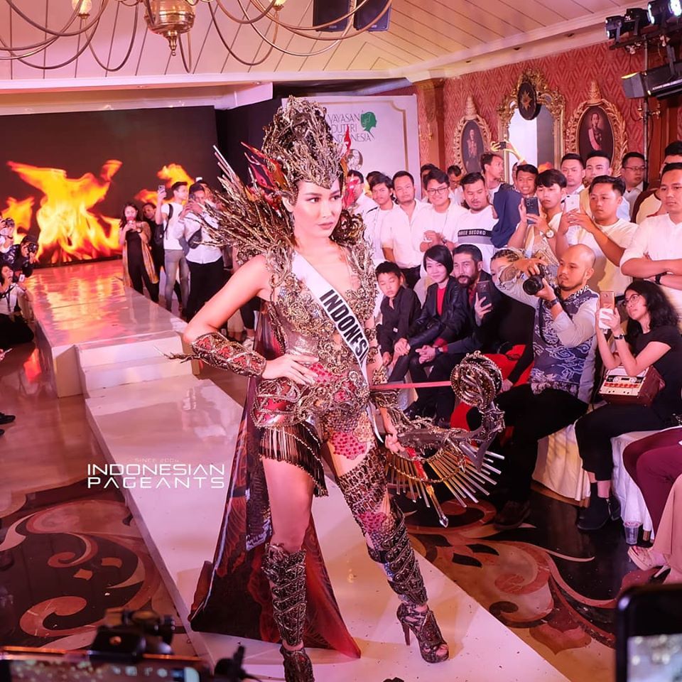Ngoài trang phục dạ hội, đáng chú ý nhất là bộ trang phục dân tộc. Theo đó “Sang Wanita” chính thức trở thành bộ National Costume của Indonesia tại Miss Universe 2019 năm nay. Bộ trang phục lấy ý tưởng về chiến binh hùng dũng của người Indonesia từ xa xưa.
