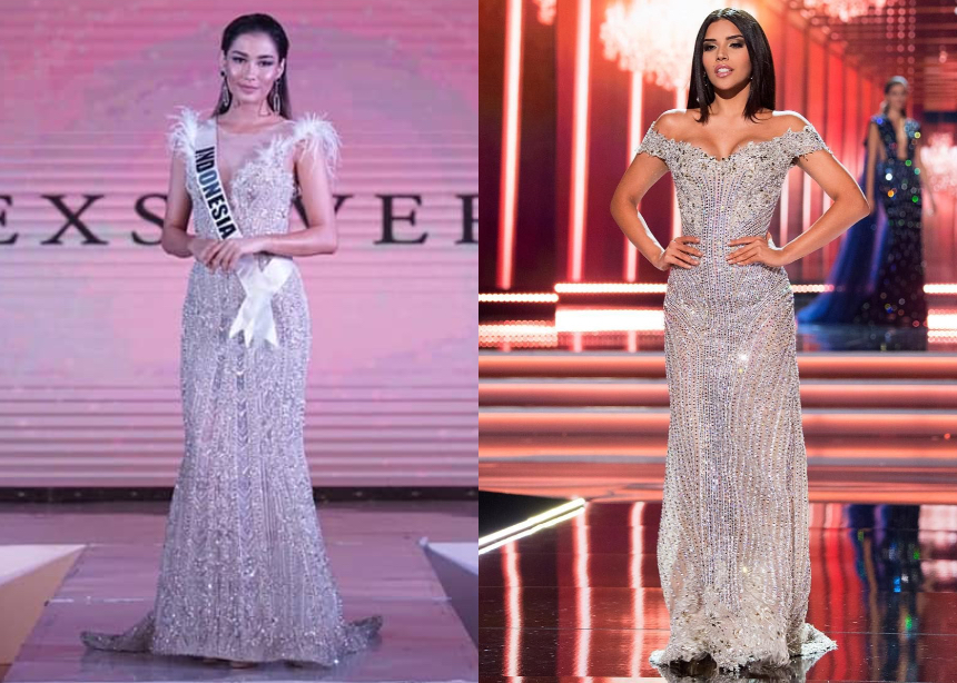 Vừa công bố, bộ cánh đã bị cư dân mạng tố sao chép ý tưởng từ Hoa hậu Colomiba 2017 - tức Á hậu 1 Miss Universe 2017.
