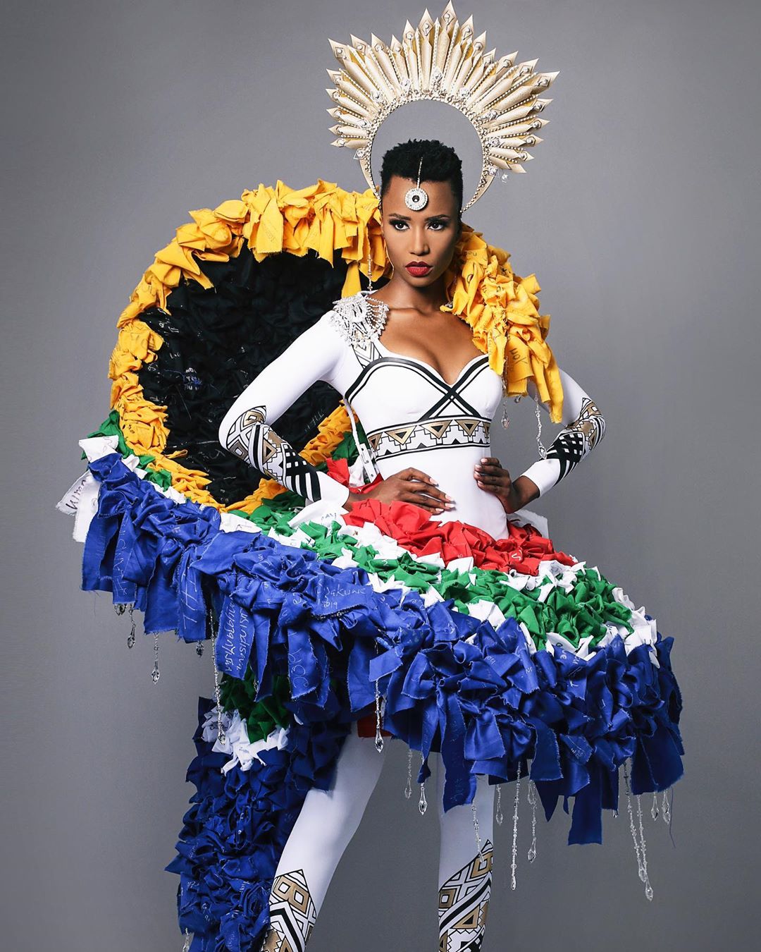 Vào hôm 22/11, Hoa hậu Hoàn vũ Nam Phi đã tiết lộ trang phục dân tộc mà cô sẽ mặc tại cuộc thi Miss Universe 2019 tới. Là người trực tiếp tham gia chiến dịch #HeForShe với công việc của một nhà hoạt động chống lại bạo lực trên cơ sở bình đẳng giới, nên ý tưởng bộ trang phục được hình thành dựa trên dự án xã hội của Zozibini Tunzi.