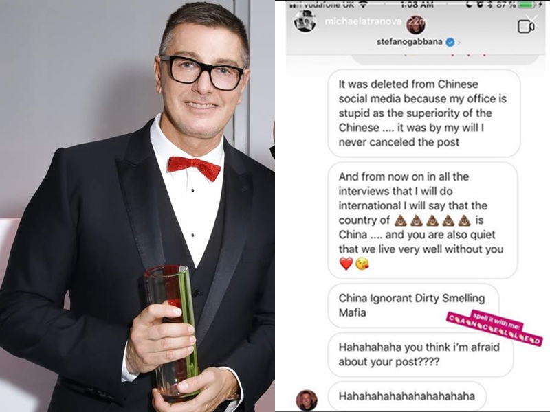 Giữa tâm bão, nhà thiết kế thời trang Stefano Gabbana như thêm dầu vào lửa khi có những stories và tin nhắn nhục mạ kì thị người Trung Quốc, tấm hình tin nhắn được các tài khoản lan truyền trên mạng cực nhanh