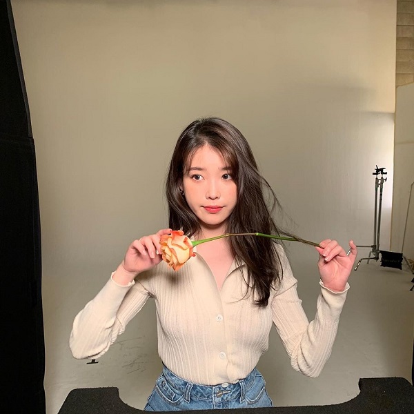 IU trong hình ảnh mới nhất trên trang cá nhân instagram khi cô đang chụp hình trong một địa điểm stuido. Nữ ca sĩ diện kiểu áo chất liệu len màu be ôm sát người mix cùng quần jeans