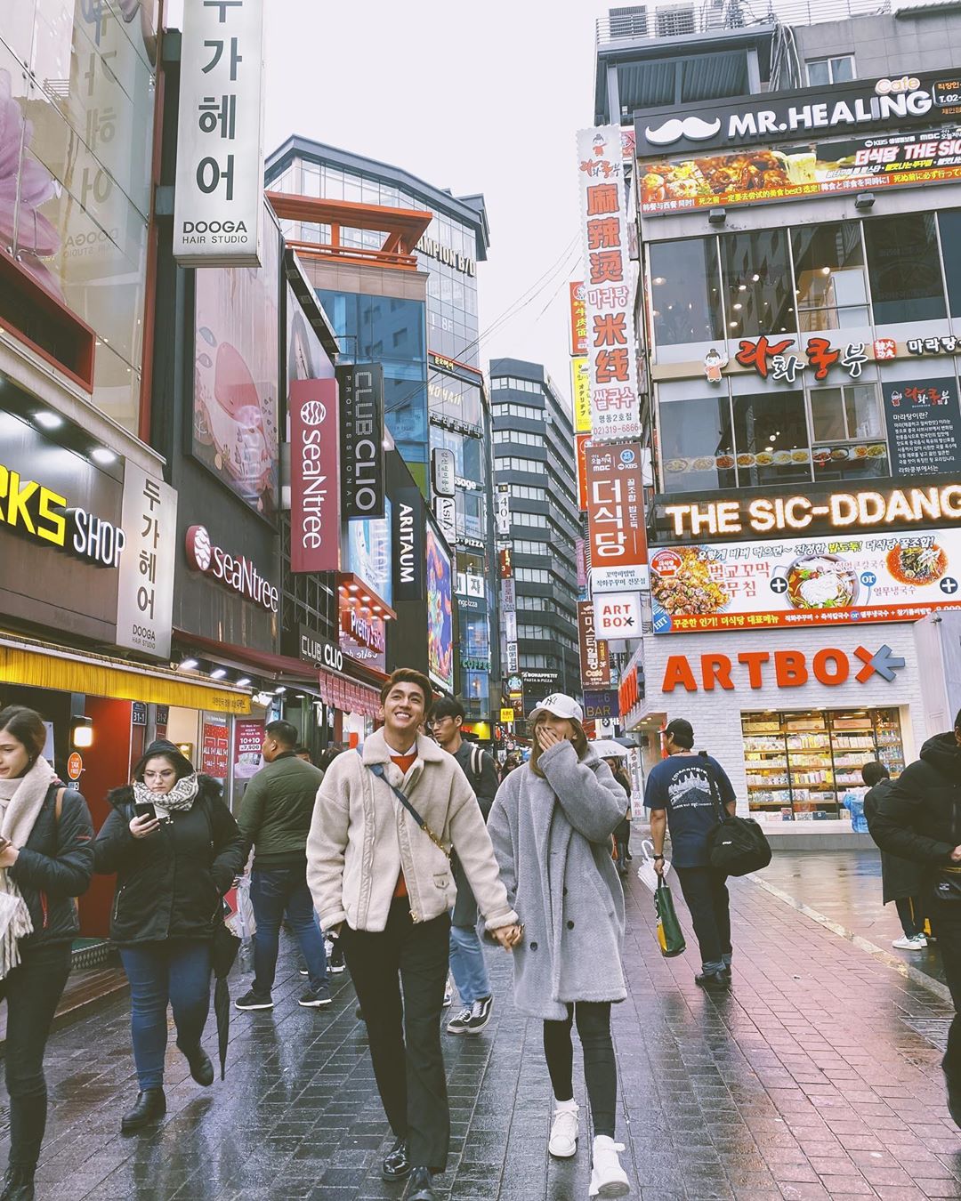 Á hậu Phương Nga và nam diễn viên điển trai Bình An vui vẻ, tình tứ nắm tay nhau dạo phố cùng set đồ hợp với những ngày đầu đông.