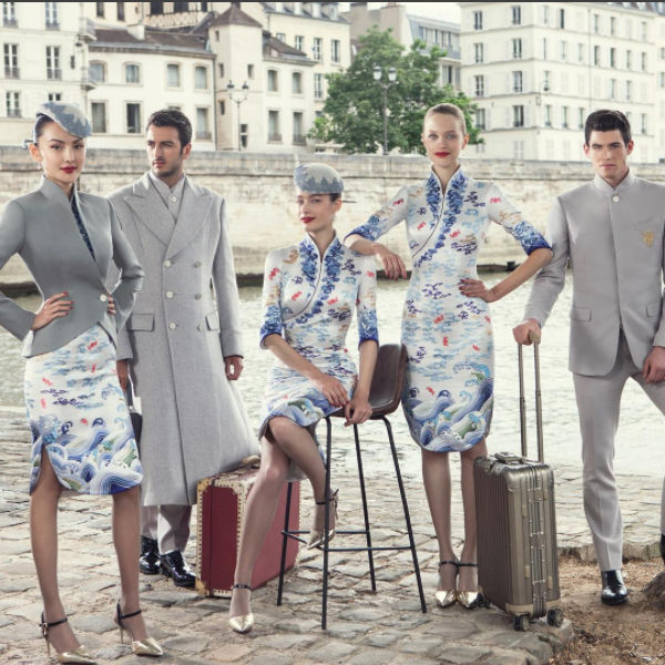 Hainan Airlines đã hợp tác với nhà thiết kế Laurence Xu, vừa qua cũng đã giới thiệu bộ sưu tập đồng phục này tại Paris Couture Week. Lấy cảm hứng từ “xường xám”, một trang phục truyền thống của Trung Quốc, bộ đồng phục này có sự pha trộn giữa xu hướng thời trang hiện đại theo phong cách phương Tây và các yếu tố nghệ thuật Trung Quốc truyền thống như hình vẽ, sóng và thậm chí loài chim thần thoại Trung Quốc - Kim Sí Đại Bàng.