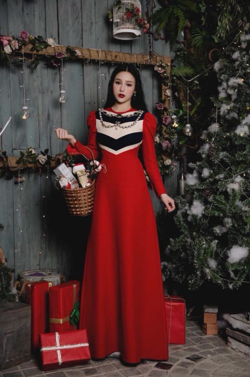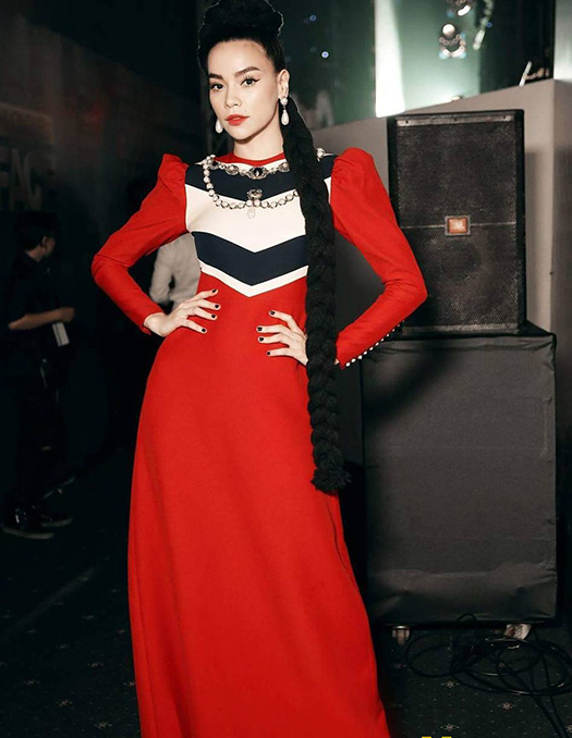 Chiếc váy hàng hiệu đắt đỏ này được Hồ Ngọc Hà mặc hồi năm 2016, trong đêm chung kết The Face mùa đầu tiên với vai trò huấn luyện viên. Trang phục cùng lối trang điểm khiến Hà Hồ trông thật quyền lực.