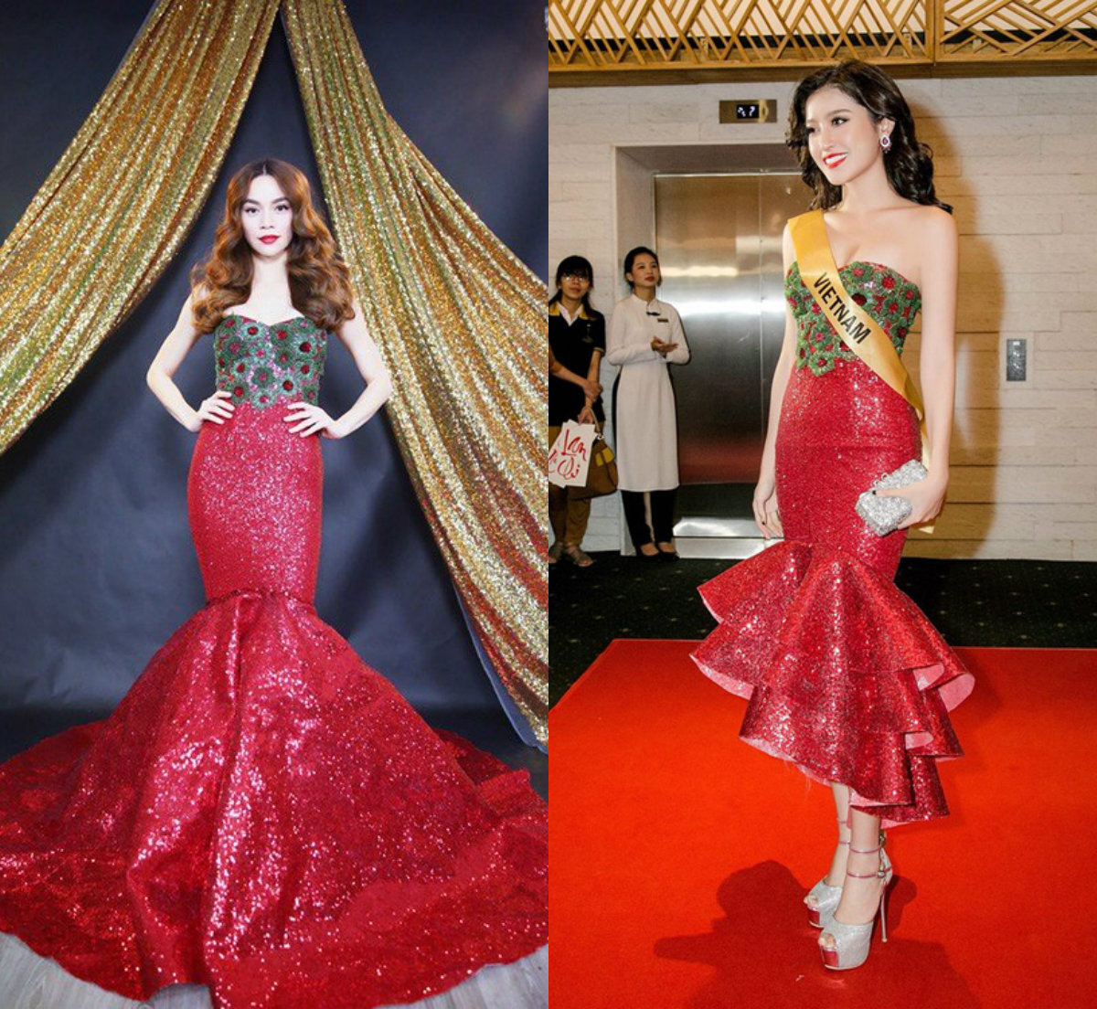 Chỉ trong ít ngày trước, thí sinh Hoa hậu HHHV Việt Nam đã chọn lại thiết kế đẹp mắt này. Tuy nhiên cùng một bộ cánh nhưng khoảng cách giữa hai người đẹp này quá lớn.