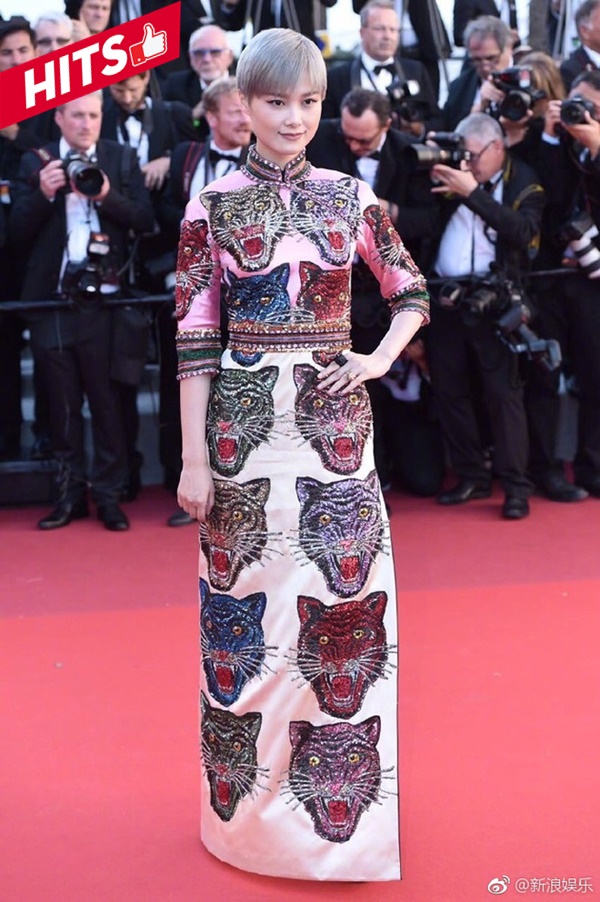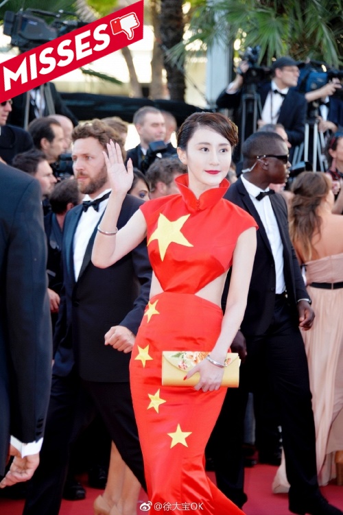 Hotgirl Từ Đại Bảo của làng giải trí Hoa ngữ hứng nhiều gạch đá vì “tội danh” mặc xấu cả về hình thức lẫn ý nghĩa khi diện chiếc váy mang dấu ấn cờ tổ quốc trên thảm đỏ Cannes 2017. Dù phom dáng không đến nỗi nào nhưng chất liệu vải “tầm thường” khiến cô kém sang hơn hẳn so với dàn mỹ nhân lộng lẫy cùng xuất hiện tại sự kiện. Chỉ có nhanh chóng thay gấp bộ cánh khác thì cô nàng mới có thể “cứu vớt” hình ảnh của mình trong lần tiếp theo.